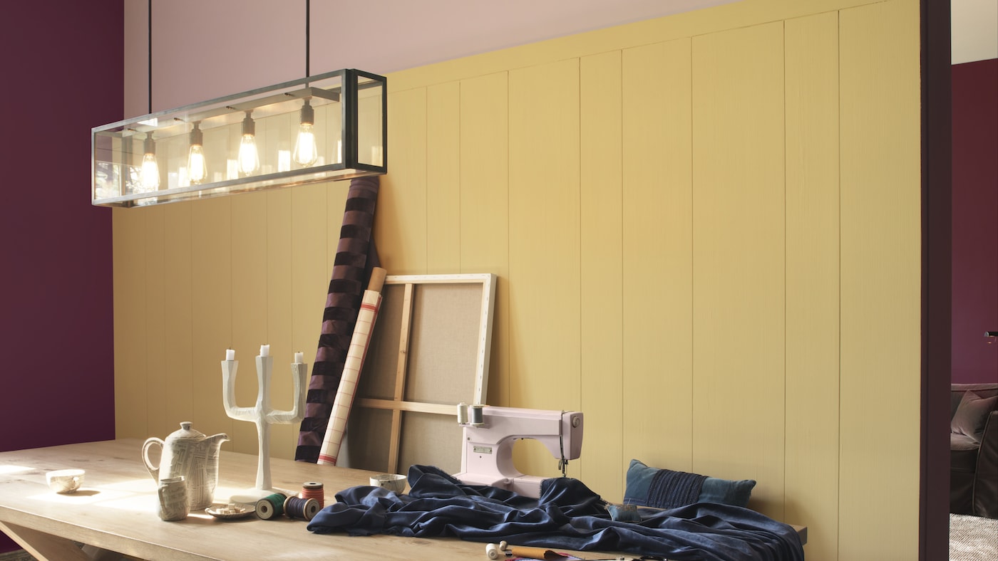 Sử dụng màu hồng đậm để tạo niềm say mê đầy sáng tạo cho một bức tường màu vàng.