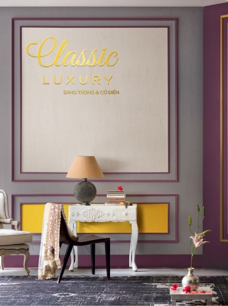 Hãy đột phá với phong cách Sang trọng & Cổ điển, gia chủ có thể chọn màu vàng hoặc nâu ánh kim rực rỡ để thể hiện trên tường nhà. Nhờ những gam màu ấm áp & đậm đà kết hợp với chất liệu tinh xảo trong gian phòng, hiệu ứng của sơn sẽ làm nổi bật lên nét đẹp lộng lẫy đầy quyền quý trong không gian hiện đại mang nét cổ điển.